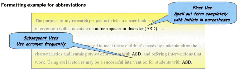 | According to the APA Manual, terms used fewer than